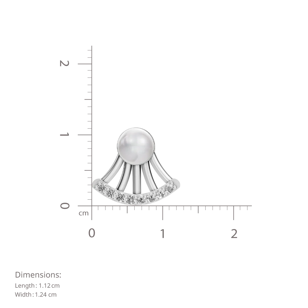 These unique jacket-style studs feature a pearl at the top, with fine silver lines extending downward in a graceful arc. The design gently curves into an arc of CZ stones, adding a soft sparkle beneath the ear. Modern yet elegant, they offer a fresh take on classic pearl studs.