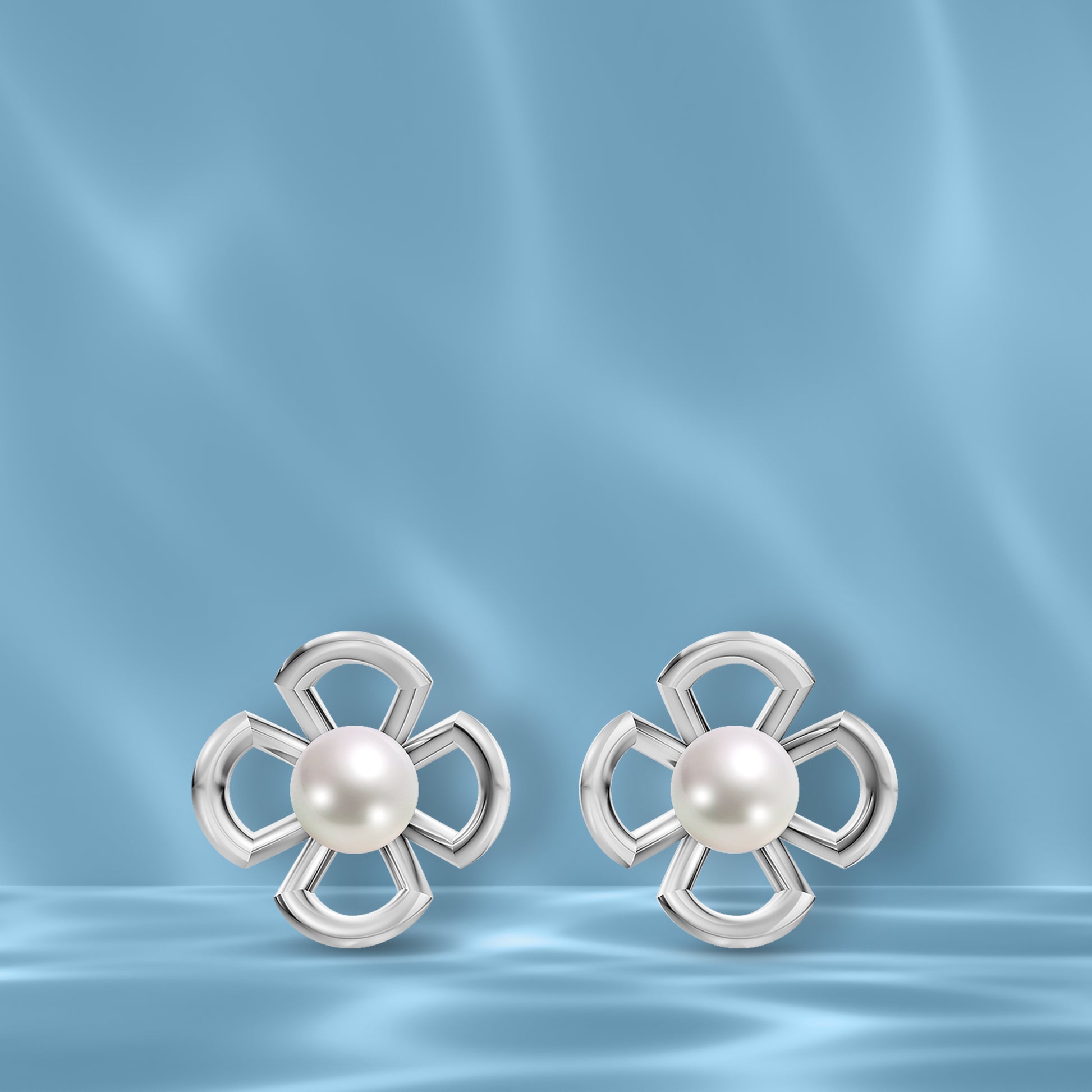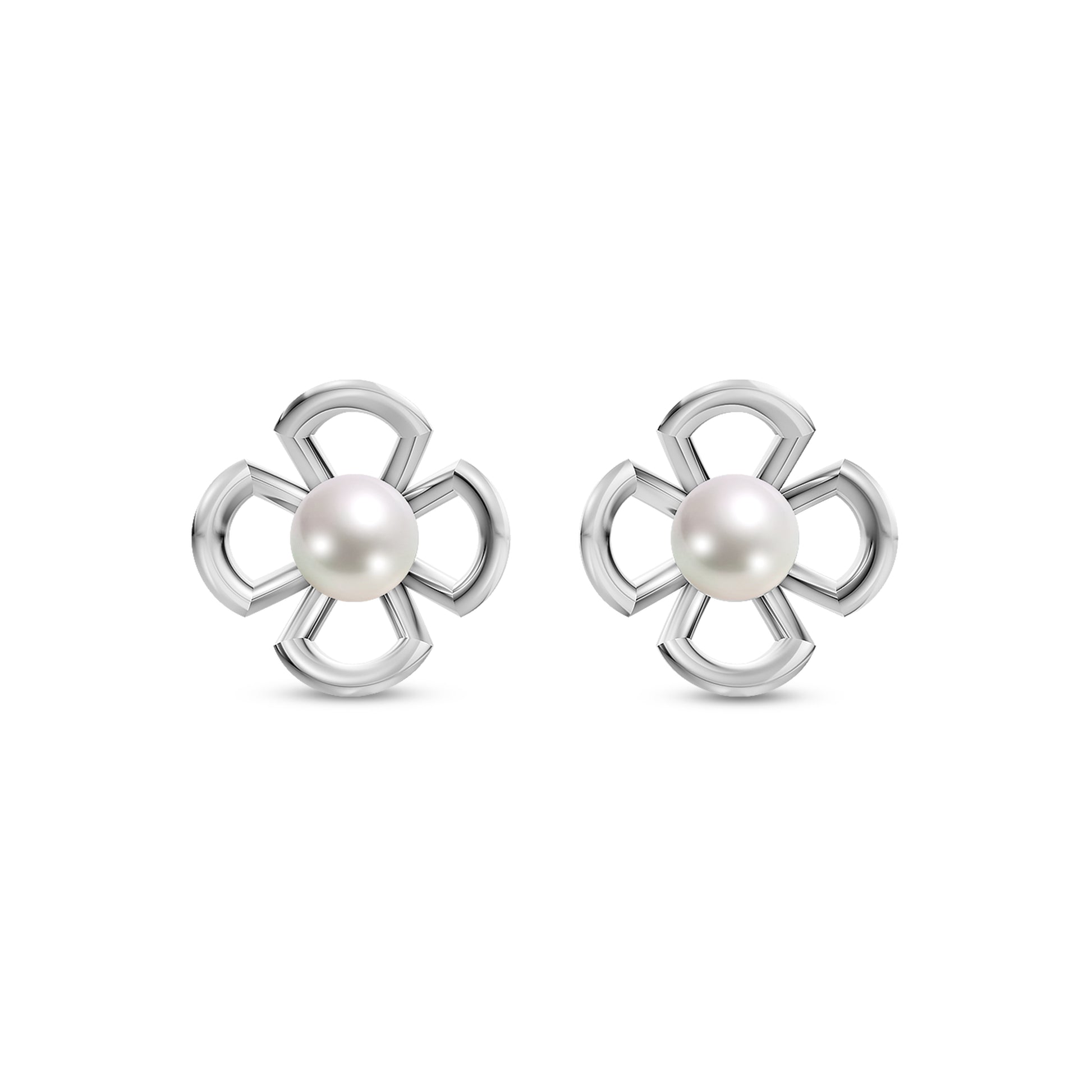 A glowing pearl sits at the heart of four sculpted sterling silver petals, creating a soft 3D floral form. Designed to catch light from every angle, these earrings offer a delicate yet refined look. Classic with a touch of depth, they bring natural beauty to everyday elegance.
