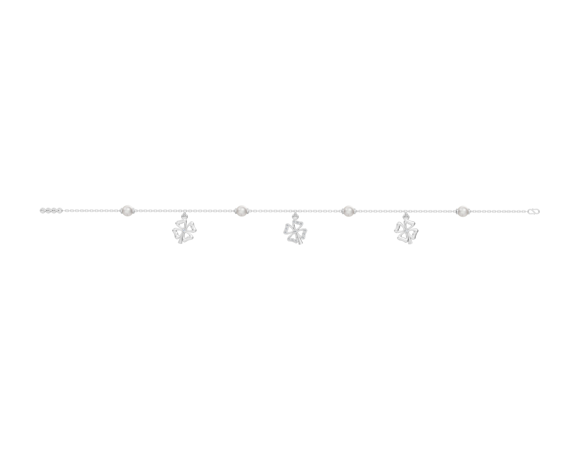 This delicate charm bracelet features a graceful alternation of dangling silver flowers and lustrous pearls, creating a playful yet elegant rhythm. Each flower charm shimmers softly, while the smooth pearls add timeless beauty—together crafting a light, feminine accessory perfect for layering or wearing solo.