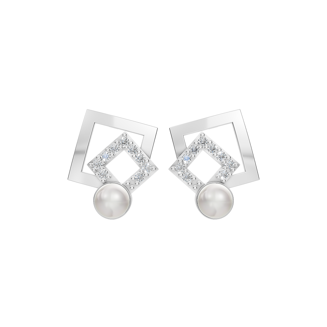 Inspired by structured beauty, the Grid-light Studs feature a geometric double-square design in silver, highlighted with a center of sparkling CZ and a prominent pearl on the edge. A contemporary classic, these studs bring symmetry and softness together in perfect harmony.