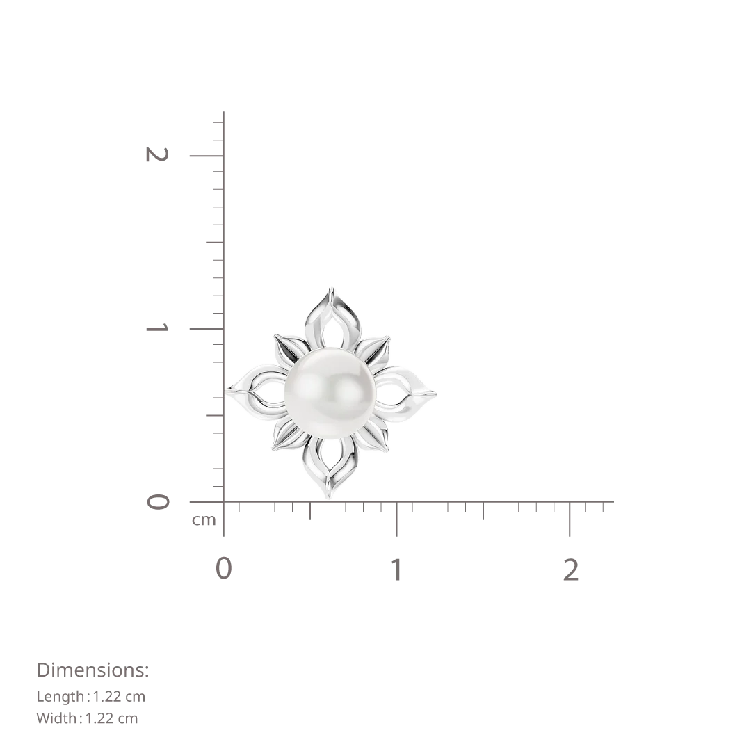 A radiant pearl takes center stage, surrounded by an elegant arrangement of sterling silver flower petals and leaves. This classic design captures timeless beauty with a delicate, nature-inspired touch—perfect for adding subtle grace to any outfit.