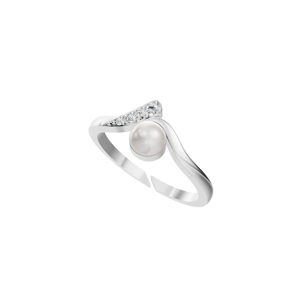 The Elegant V Pearl Ring brings modern minimalism and elegance together. The sleek V-shaped band is designed in 92.5 Sterling Silver, with one side set in sparkling CZ stones and the other side polished for a clean contrast. A luminous freshwater pearl solitaire rests at the centre, creating a refined statement, perfect for everyday wear, formal looks, or effortless gifting.