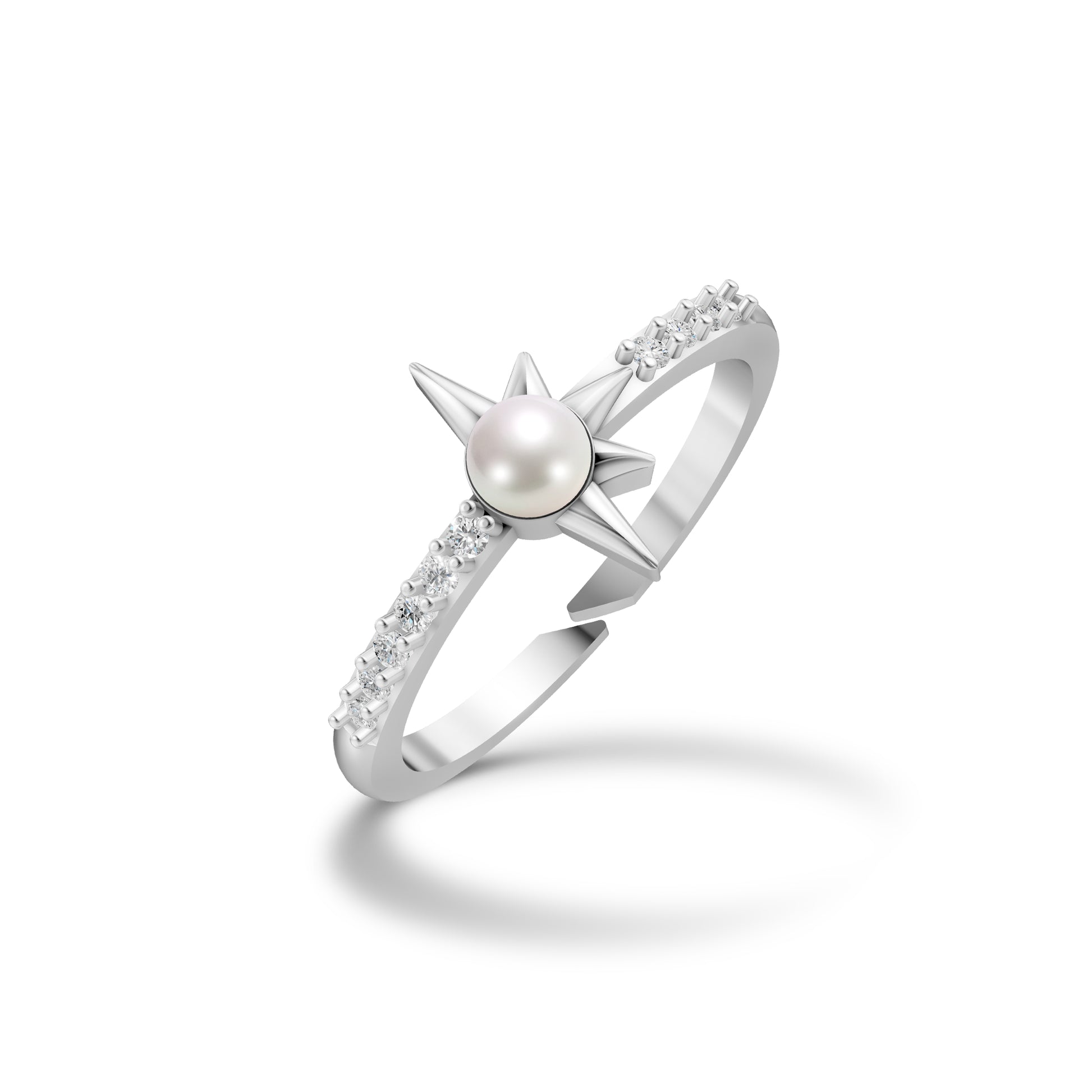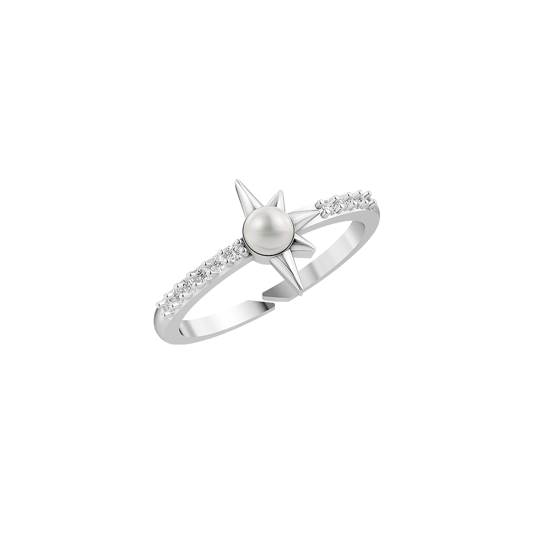 The Rosewind Pearl Ring draws its name from the 'Compass rose' - that elegant symbol guiding travellers across time. Just like its namesake, this design flows with gentle curves that echo direction and movement. Sparkling CZ stones trace the band, while a luminous freshwater pearl rests at the centre - a quiet reminder of finding beauty in your journey. Crafted in 92.5 Sterling Silver, it’s a piece made to carry a little meaning, every time you wear.