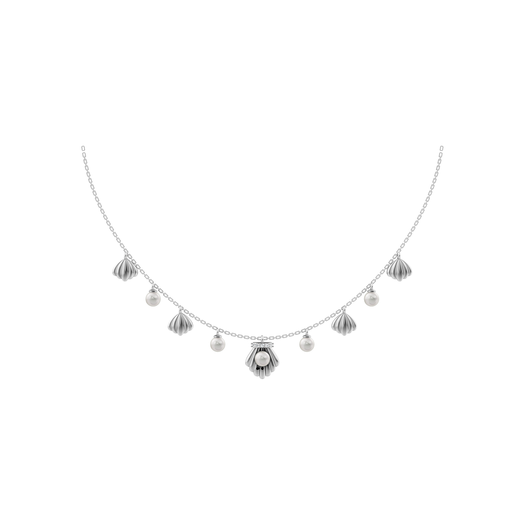 A delicate 92.5 silver chain adorned with soft freshwater pearl drops and tiny silver shell charms. Light, graceful, and quietly bringing a hint of the sea to your everyday style. Wear it layered or solo for an effortless, refined finish.
