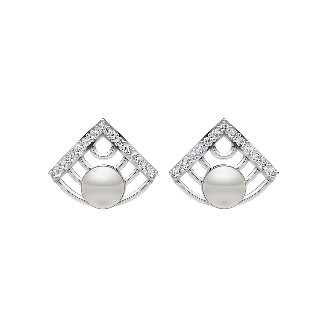 Sculptural and sleek, these jacket-style earrings feature an inverted V design outlined in radiant CZ stones. Guiding inner lines draw the eye to a luminous freshwater pearl at the center. A modern blend of structure and softness — perfect for refined daywear or elegant evenings.